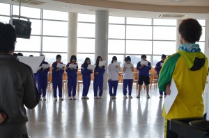 「学校でいまだかつてないほどの巨大台風に襲われた生徒たちが、台風が過ぎ去った頃に屋上に上がり、思い思いの言葉を話す」という1シーンを全員で演じます。