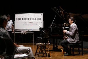 小ホールのステージ上で行われたデュオ・レゾネによるアナリーゼ(楽曲分析)。テーマは、「クラリネット徹底解剖」です。