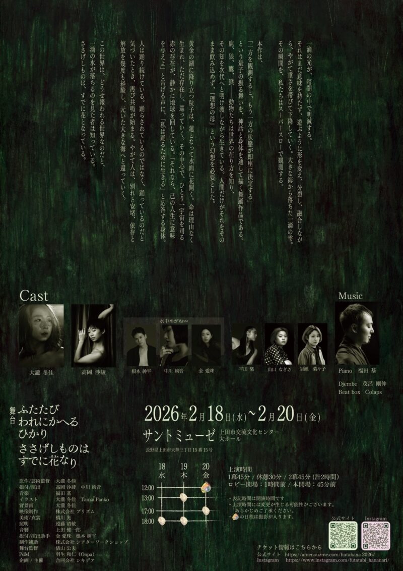 ・令和8年2月20日(金) 開場11:00/開演12:00、開場16:00/開演17:00(2公演)