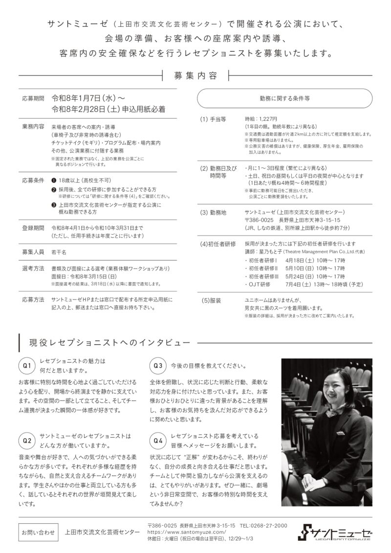 (3) 上田市交流文化芸術センターが指定する公演に概ね勤務できる方
