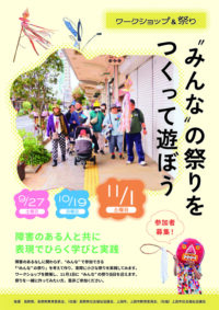 このワークショップは、障害のあるなしに関わらず、“みんな”で参加できる「”みんな”の祭り」を考え、実際に小さな祭りを実践する企画の一つです。